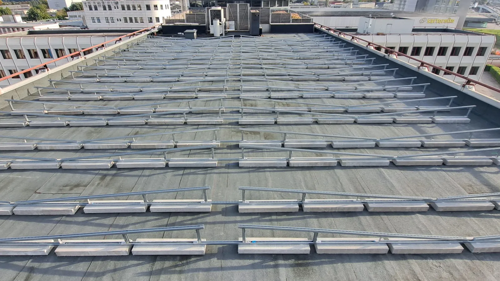 Grazie alla nostra competenza ed esperienza specializzata, maturata dal 2008, siamo in grado di offrirti soluzioni personalizzate e molto efficienti che ti garantiscono alta tenuta e durata nel tempo per il montaggio dei pannelli fotovoltaici su tetto piano, sia per strutture a Vela, sia per strutture “Est-Ovest”.